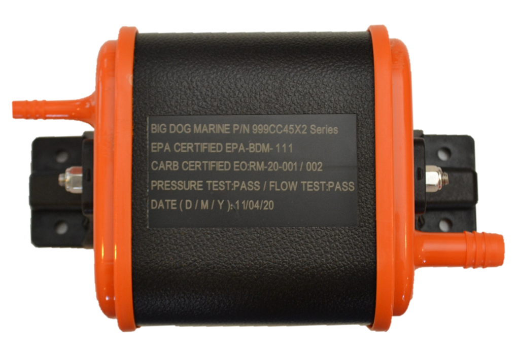 | Small Carbon Canister | 999CC45H2 | 500cc | max 80 gal | max 160 gal | 5/8" | 5/16" | Venting | Horizontal | 8.25in | 5in | 3.63in | $-- | $-- |